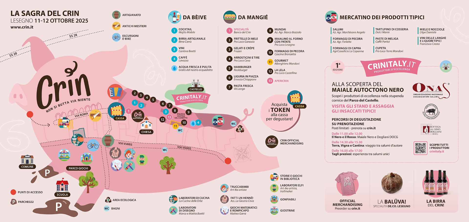 Novità 2025 della Sagra del Crin è il Crinitaly. Tantissimi produttori di eccellenza quest’anno saranno presenti alla prima esposizione Crinitaly nella stupenda cornice del Parco del Castello. Degustazioni di salumi curate dall’Onas (Organizzazione Nazionale Assaggiatori Salumi) insieme a sommelier per creare abbinamenti che esaltino il sapore e la particolarità degli insaccati.