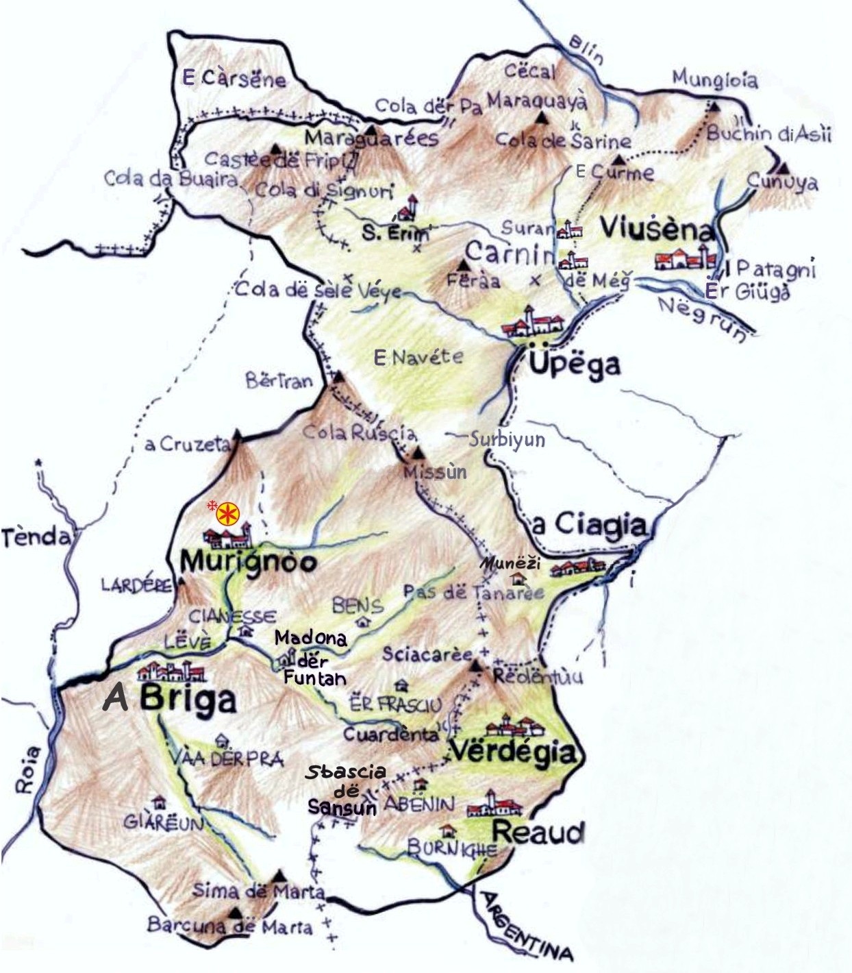 Una realtà formata da otto centri abitati (sei italiani e due francesi), con origini nell’antico Comune di Briga Marittima, oggi La Brigue in Francia, di cui gli altri sette centri erano maṡàgi, ossia fondazioni legate agli spostamenti dei pastori: Morignole (Francia), Realdo, Verdeggia, Piaggia, Upega, Carnino e Viozene.