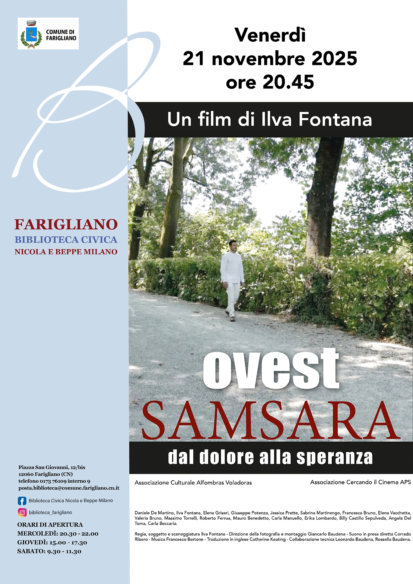 Venerdì 21 novembre alle ore 20.45, presso la Biblioteca civica Nicola e Beppe Milano di Farigliano, verrà presentato il film “Ovest Samsara“ di Ilva Fontana.