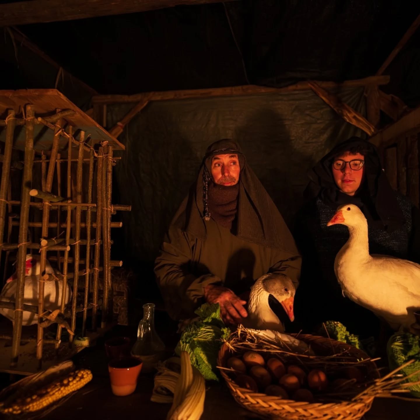 Lungo il percorso di visita, obbligato per garantire ordine e sicurezza, prendono vita gli antichi mestieri, con scene di vita quotidiana fedelmente ricostruite che raccontano la semplicità e la fatica del mondo contadino e artigiano. Al centro della rappresentazione, come da tradizione, si trova la capanna della Natività, fulcro spirituale ed emotivo dell’intero presepe.