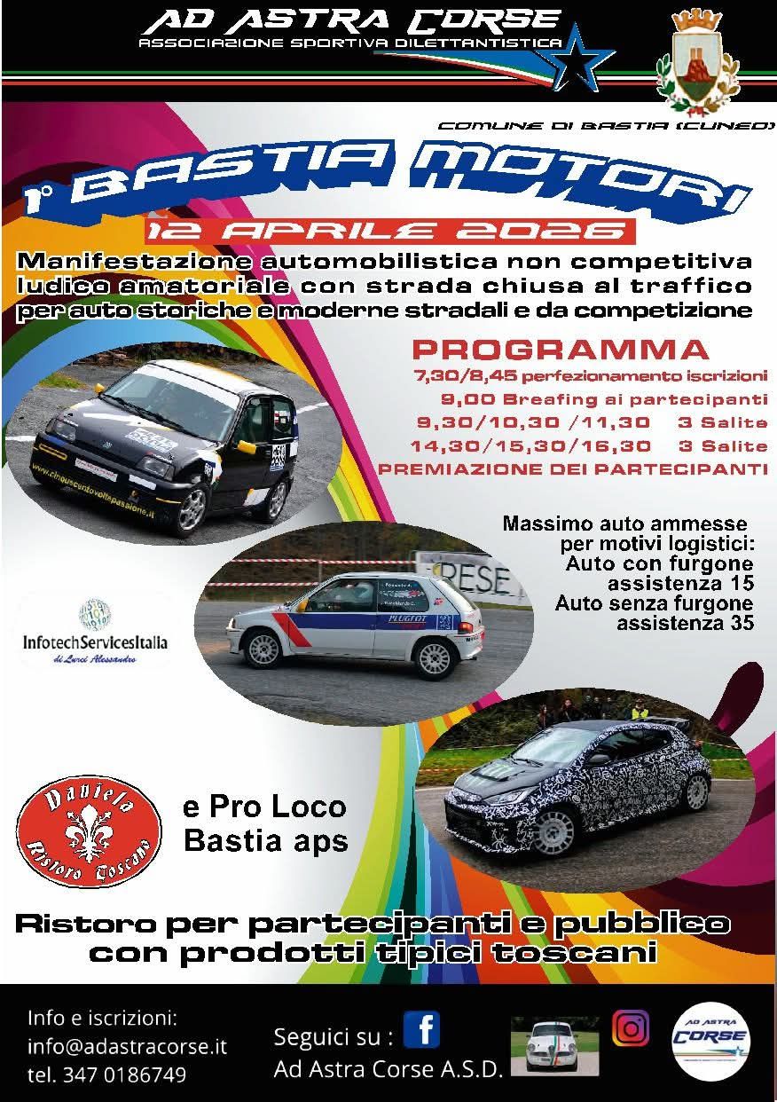 Sarà una giornata all’insegna della passione per i motori, del territorio e della convivialità quella di domenica 12 aprile a Bastia Mondovì, quando andrà in scena la prima edizione di “Bastia Motori”, manifestazione automobilistica non competitiva, appuntamento di richiamo per appassionati e curiosi.