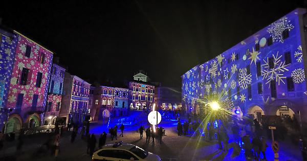Lo show di luci mapping a Mondovì Piazza: foto, orari, dettagli. Proiezioni tutte le sere, tema natalizio fino al 9 gennaio