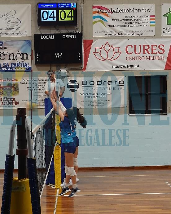 Dopo il disastroso primo set, Val Chisone ritrova ritmo sfruttando le giocatrici migliori a disposizione con la Tosini e il libero Long e lascia indietro il Villanova 8-10. Le ragazze di coach Ravotti vanno sul 12 pari, poi sul 15-15 e infine vincono il break con Sciolla in battuta trovando il distacco dalle avversarie. Il set si chiude con uno scambio lunghissimo e Val Chisone al servizio: decisivo il muro di Sciolla e Garelli per il 25-19.