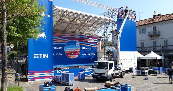 Gli addetti ai lavori, oggi, durante le operazioni di montaggio del palco principale, in piazza Umberto I