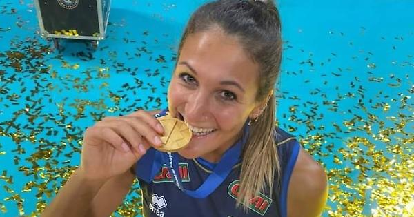 Sofia D'Odorico, al termine della finalissima, "morde" la medaglia d'oro appena conquistata all'Europeo