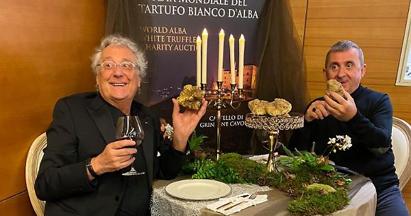Enzo Iacchetti al castello di Grinzane con il comico Stefano Bicocchi, in arte "Vito"