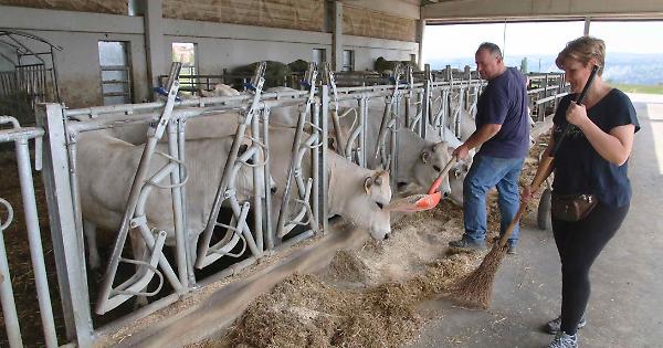 Claudia e Renato, dell'azienda Cogno di Carrù, accudiscono i capi del loro allevamento di Piemontese