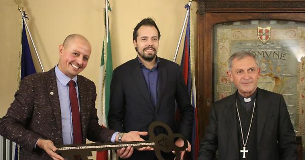 il Gran Priore Dario Perucca, con il sindaco Nicola Schellino e il vescovo mons. Egidio Miragoli