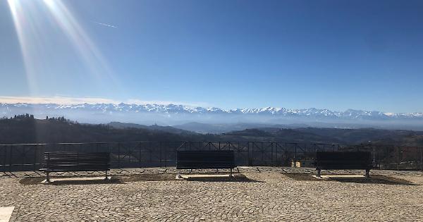 Particolare della piazza, con le nuove panchine dalle quali si gode di una splendida vista sull'arco alpino