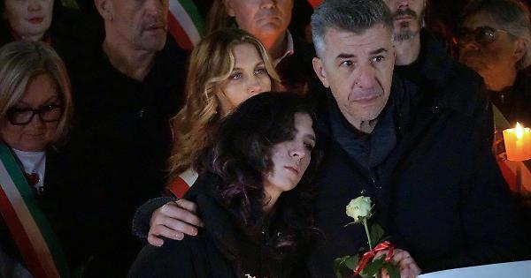 La sorella Elena e il padre Gino Cecchettin durante la fiaccolata in memoria di Giulia, Vigonovo, 19 novembre 2023. Foto ANSA/SIR