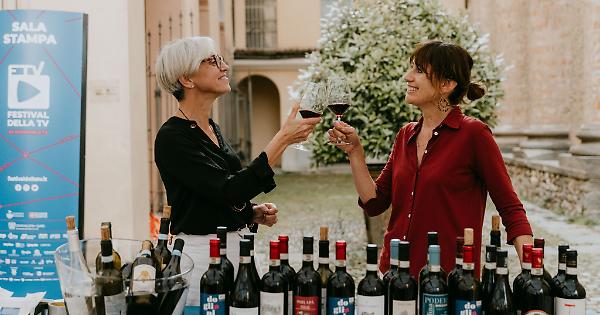 Le organizzatrici del Festival, Federica Mariani e Simona Arpellino, brindano con un bicchiere di Dogliani Docg, durante l'edizione 2023