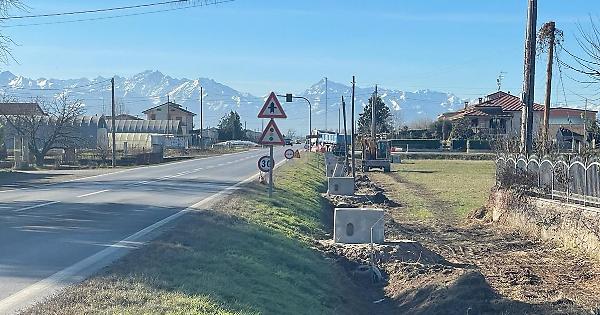 Lavori in corso all'incrocio, per posizionare i nuovi lampioni