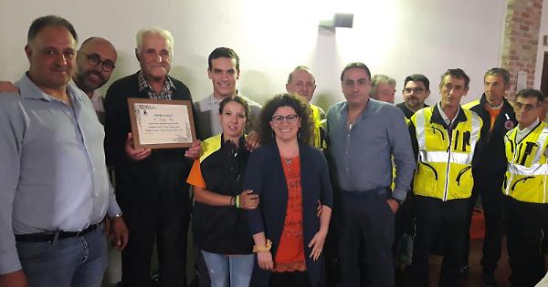 Giuseppe Peisino in posa, con il sindaco Ferrero, la Giunta, il presidente della Provincia, Luca Robaldo e alcuni volontari