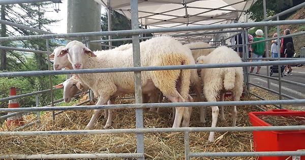 Alcuni esemplari di pecora "delle Langhe" in mostra a Murazzano nella passata edizione della Fiera