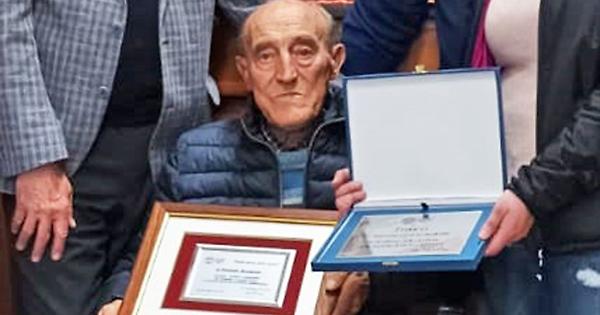Franco Accamo il giorno della sua nomina a presidente onorario del Circolo Acli di Sale Langhe