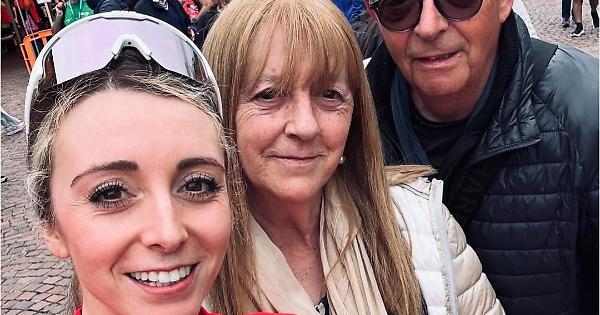 Laura Restagno, sorridente all'arrivo, in compagnia dei suoi genitori