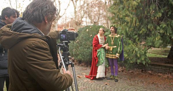 Il regista Baudena al lavoro durante le riprese al castello