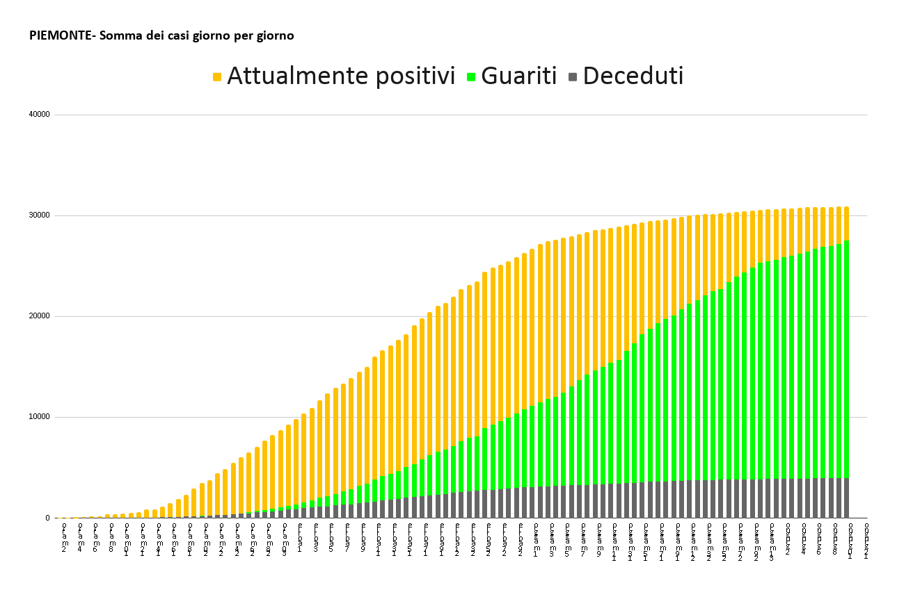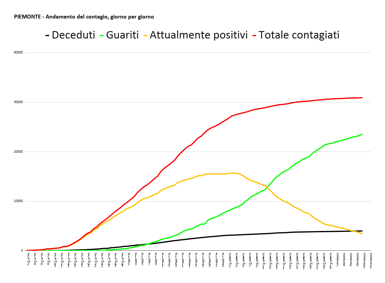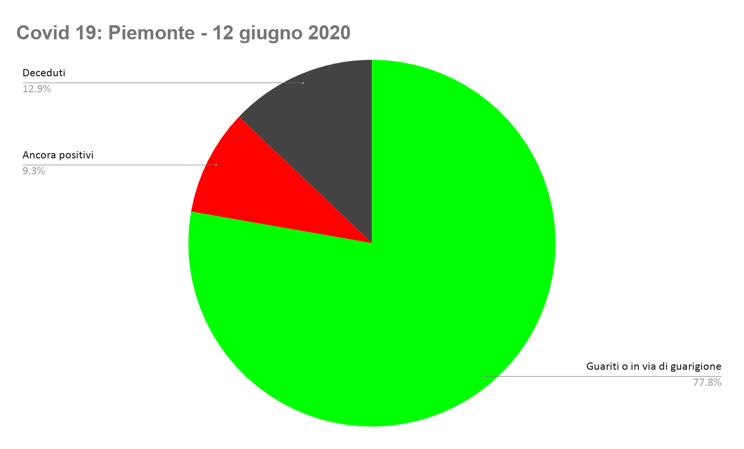 Sono scesi a 2.897 i piemontesi ancora contagiati dal Covid-19: meno del 10% dei 30.989 casi in totale. E di questi solo 557 sono ricoverati, di cui ne restano 30 in terapia intensiva. I guariti / in guarigione ormai sono 24.096, il 77,8%. Nell'ultima settimana in Granda risultano decedute solamente 2 persone affette dal virus, nessuna nelle ultime 48 ore. BOLLETTINO DEL 12 GIUGNO 21.856 PAZIENTI GUARITI E 2.240 IN VIA DI GUARIGIONE - Oggi l’Unità di Crisi della Regione Piemonte ha comunicato che i pazienti virologicamente guariti, cioè risultati negativi ai due test di verifica al termine della malattia, sono 21.856 (+369 rispetto a ieri), così suddivisi su base provinciale: 2.349 (+31) Alessandria,1.226 (+35) Asti,799 (+1) Biella, 2.110 (+19) Cuneo, 1.932 (+59) Novara, 11.442 (+ 191) Torino, 945 (+33) Vercelli, 907 (+0) Verbano-Cusio-Ossola, oltre a 146 (+0) provenienti da altre regioni. Altri 2.240 sono “in via di guarigione”, ossi...