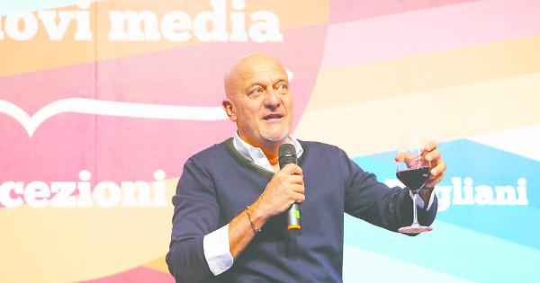 Claudio Bisio gusta un bicchiere di "Dogliani" sul palco del Festival