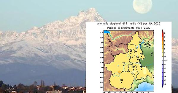 Il dato viene dalle misurazioni di ARPA Piemonte e dalla Società Meteorologica Italiana - NIMBUS: il periodo che va dal 1 giugno al 31 agosto 2025 è stato il quinto più caldo dal 1958 in Piemonte (anomalia +1.4°C). E addirittura a Torino, città la cui serie storica parte però da ben più lontano ovvero dal 1753, si parla di +1.4°C rispetto al trentennio climatologico di riferimento 1991-2020, dietro soltanto al 2003, 2022, 2015 e 2017.