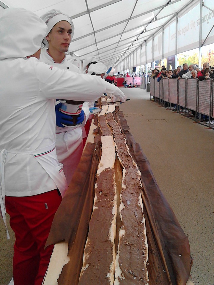Sì perché Magliano è il paese dove è nato il forno mobile, ideato dal vulcanico Dalmazzone e perfezionato con il lavoro di tanti artigiani locali. Ad occuparsi di misurazione e certificazione è stato il giudice del Guinness World Record, Lorenzo Veltri, volto noto dello show televisivo condotto da Jerry Scotti. È stato lui ad annunciare il superamento del record detenuto da un centro commerciale vietnamita, che, sei anni fa, si era fermato a 111 metri. Poi è scoppiata la festa. Presenti all’evento pure l’ambasciatore Francesco Palo Fulci, presidente Ferrero, e l’amministratore delegato Fredric Thil.