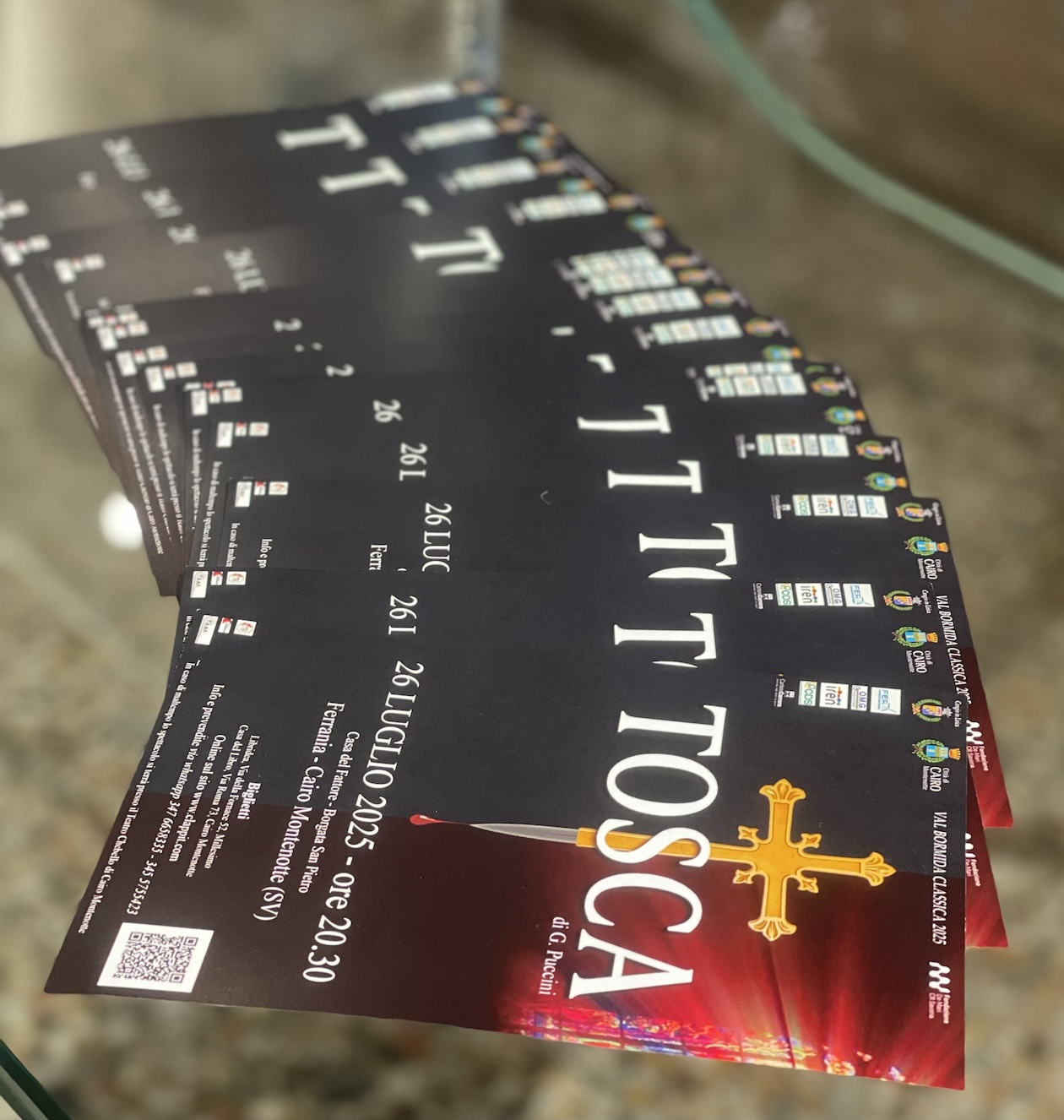 I biglietti sono acquistabili online sul sito www.clappit.com o presso: Libridea, Via della Fornace 52, Millesimo e Casa del Libro, Via Roma 73, Cairo Montenotte. Info e prevendite via WhatsApp al 347 6658335 o 345 5755423.