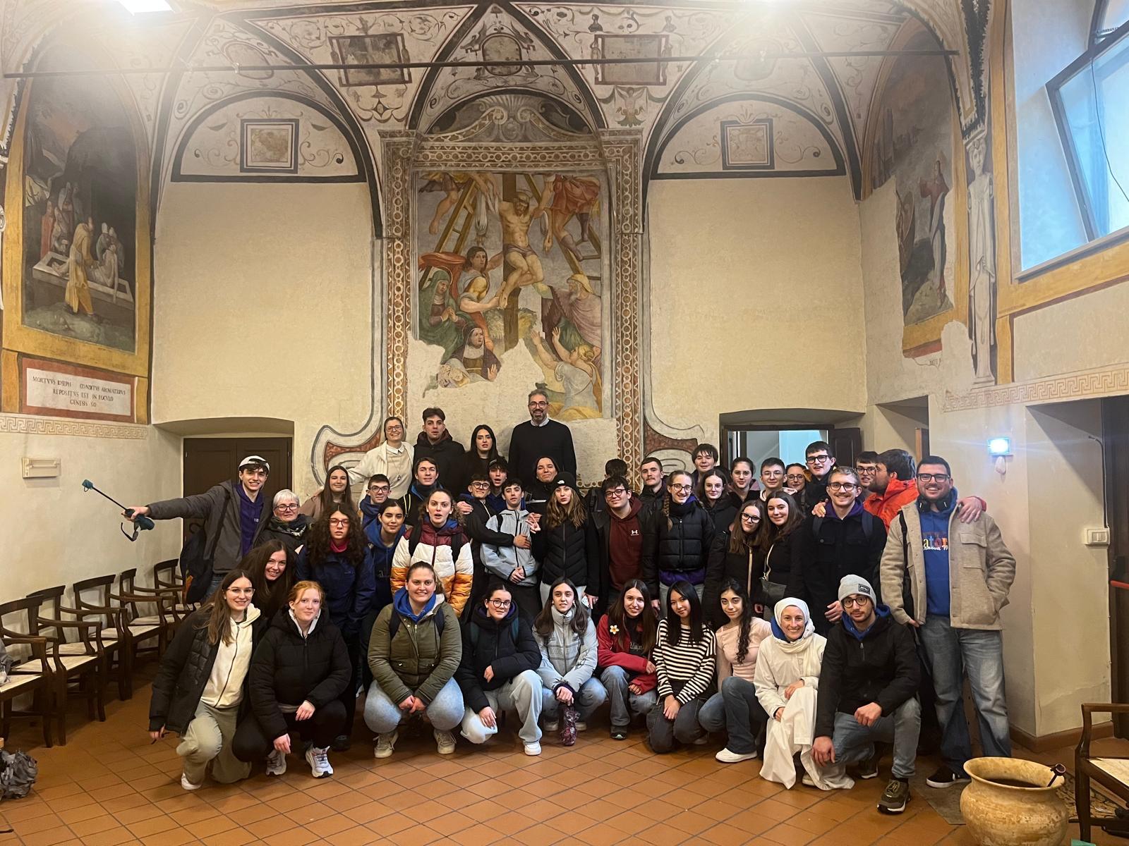 Assisi, cuore del viaggio, è stata invece lo scenario di un percorso alla scoperta della vita di San Francesco e Santa Chiara. «Francesco era un ragazzo che aveva un sogno, che lo avrebbe portato alla gloria eterna, ma anche all'egoismo – scrivono i Giovanissimi –. Un sogno che è stato frantumato e rimodellato dall'incontro con Dio. San Francesco con le sue scelte è stato capace di guidare e accompagnare le persone verso un vita più umile, ma più vicina a Dio. Passo dopo passo ci siamo addentrati tra i boschi, percorrendo le pendici del monte Subasio fino all'Eremo delle Carceri, dove ci hanno colpiti l'atmosfera raccolta e il silenzio del Santuario. La discesa ci ha poi portato finalmente nel centro di Assisi storica dove, chiesa dopo chiesa, abbiamo ripercorso tutti i momenti più importanti della vita del Santo. La Chiesa Nuova con la Casa Natale, dove Francesco ha vissuto la prima parte della vita in ricchezza e spensieratezza con la famiglia, che poi ha lasciato per seguire la volontà di Dio. La Cattedrale di San Rufino, luogo del battesimo di San Francesco e della sua seguace santa Chiara.