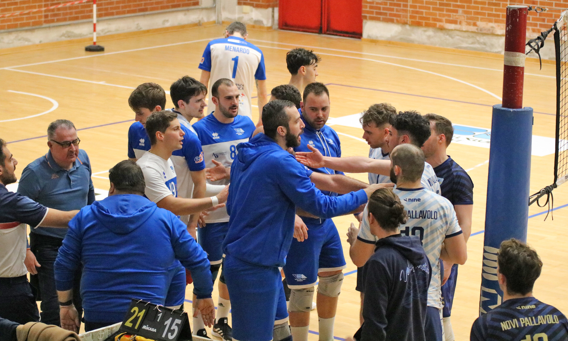 Sabato sera nell’ultima gara di andata il clima che si vive al “Pala Itis” è quello di una volta tra spazi stretti, tanto rumore e ribollire di passone. Un fattore non da poco. Nel primo set Novi sembra lasciare qualche spazio di manovra ai ragazzi di Bertini, ma nella volata finale gli ospiti sono più lucidi. Con Cortellazzi in campo dal primo minuto il set d’apertura si gioca a lungo punto a punto. Non mancano le sbavature (13-14 con copertura mancata a muro), ma sul 19 pari messo a terra da Bosio i biancoblù sembrano completamente in partita. Purtroppo una svirgolata di Coppa sotto rete e un fischio dell’arbitro per fallo di posizione mandano Novi sul 22-20. È il momento chiave del set e una sentenza per i padroni di casa.
