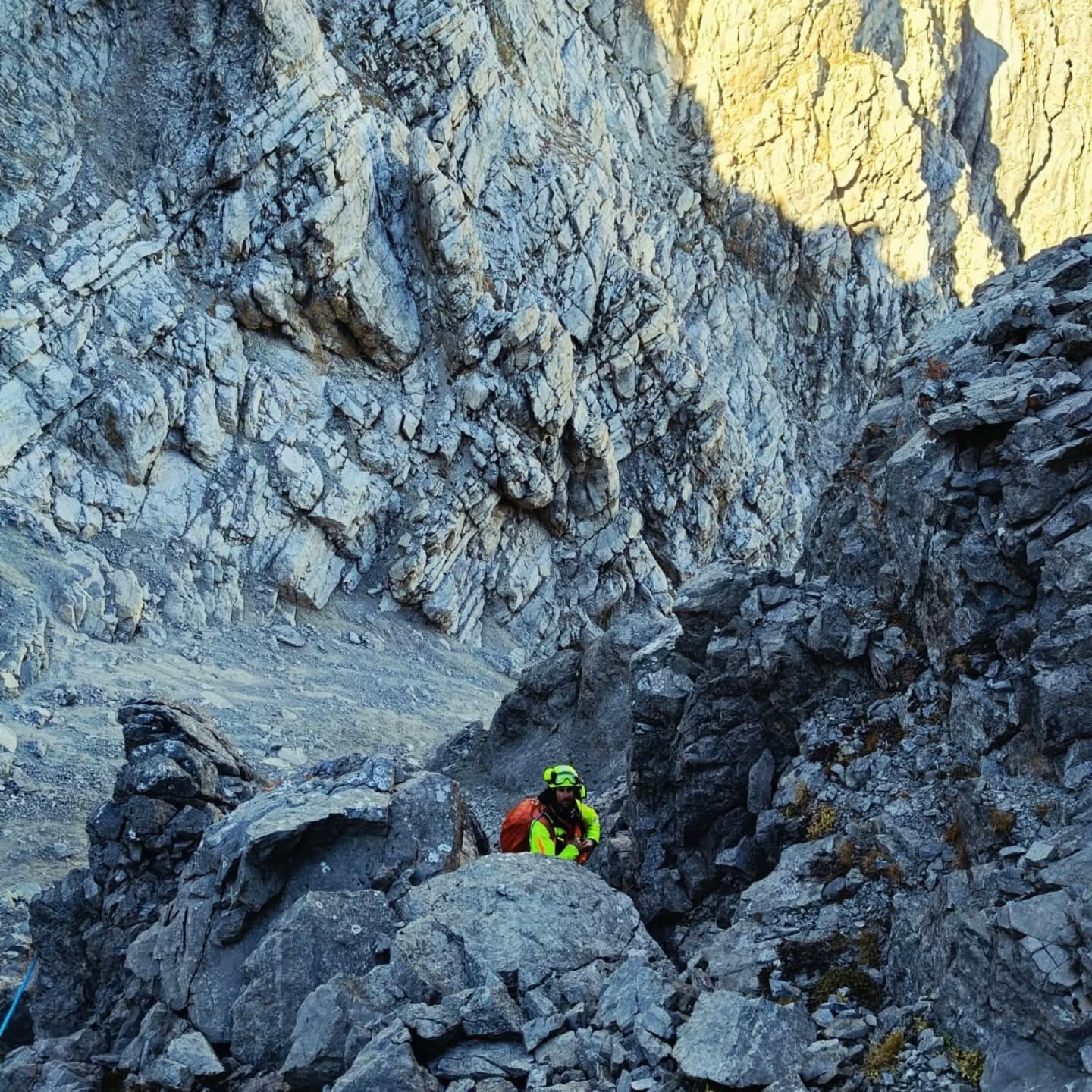 Per non mettere in pericolo i malcapitati con il flusso dell'elicottero, i due tecnici sono stati sbarcati al verricello circa 100 metri di dislivello più a monte, da dove hanno proceduto in conserva lungo la cresta.