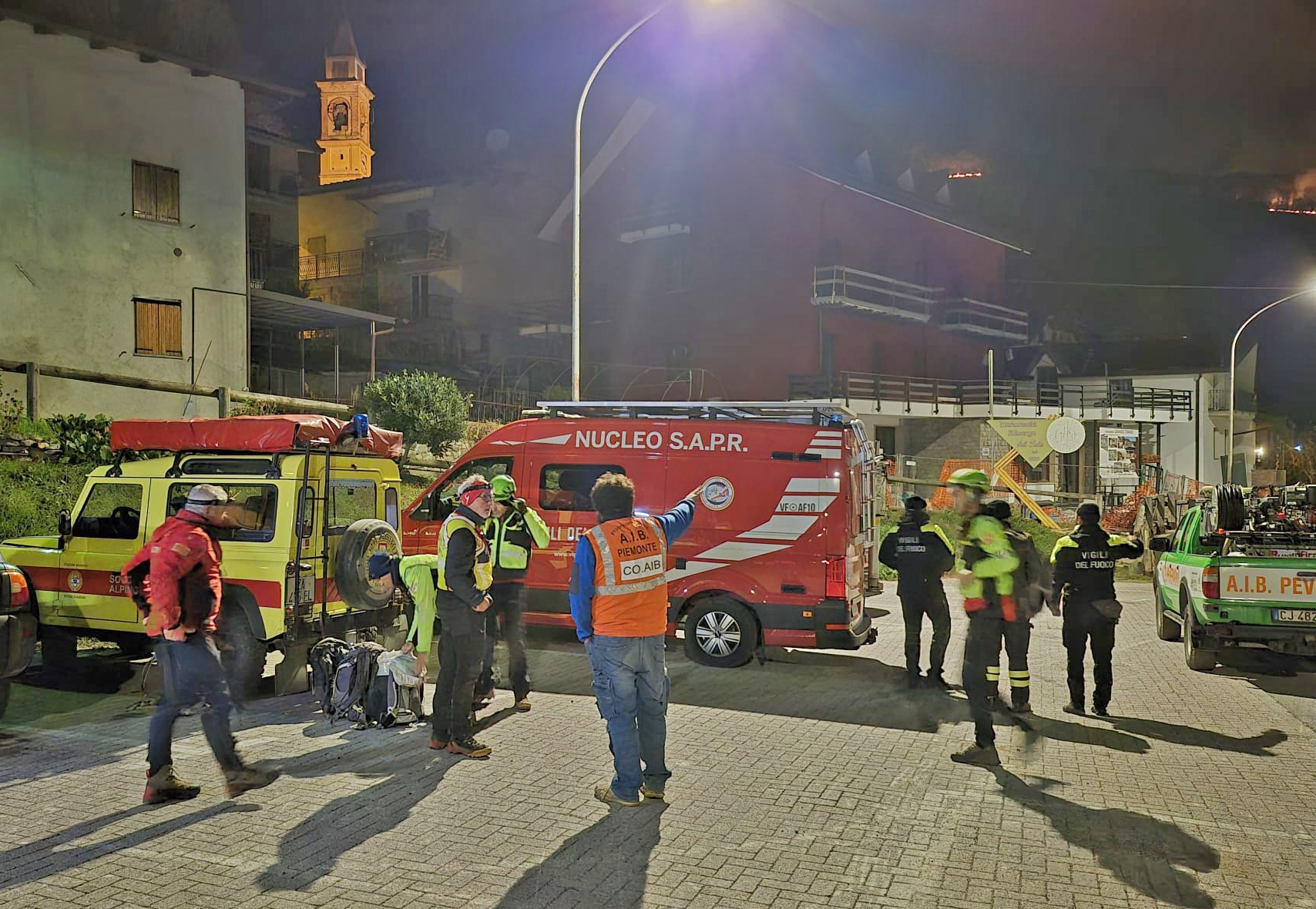 Previsto per martedì mattina l’arrivo di un elicottero per domare il fuoco. Sul posto i Vigili del fuoco da Cuneo, Morozzo e Mondovì, le squadre AIB da Chiusa Pesio e Peveragno, i carabinieri e i Forestali, le Unità cinofile e la GDF, tutto sotto il coordinamento della UCL. Presenti per le ricerche anche il Soccorso Alpino della Guardia di Finanza e il Cnsas. Sono presenti anche i droni del Sistemi Aeromobili a Pilotaggio Remoto dotati di un sistema di rintraccio del telefono cellulare.