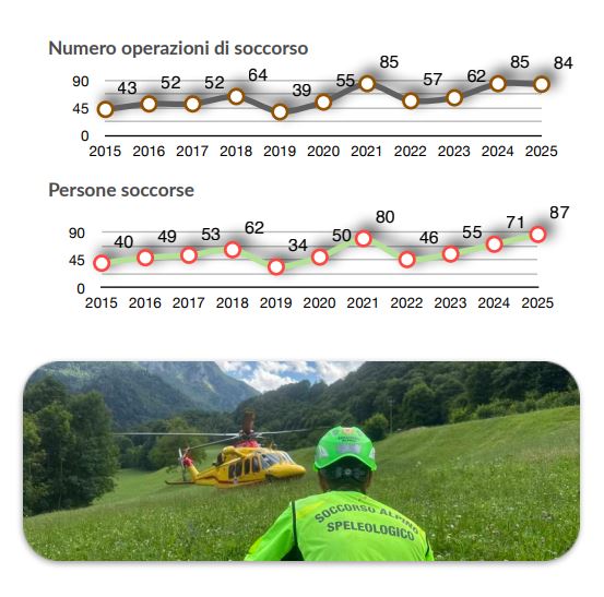 Nel 2025 le chiamate di emergenza gestite sono state 2.070, in aumento rispetto alle 1.916 del 2024. A contribuire alla crescita sono anche i miglioramenti nella copertura telefonica e la diffusione di strumenti tecnologici come app dedicate e smartwatch, che permettono di lanciare l’allarme anche da zone remote.