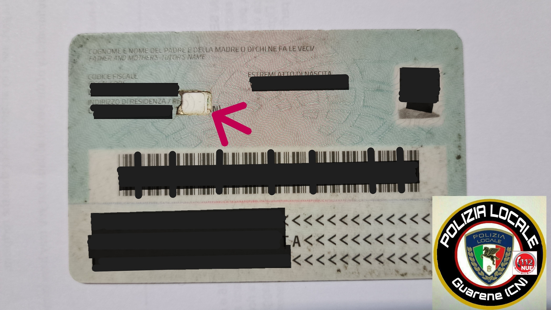 Il documento, esibito presso lo sportello degli uffici comunali ha reso necessario l’intervento della Polizia Locale che attraverso l’analisi con strumentazione specifica ed i riscontri con la banca dati nazionale ha accertato che la carta d’identità italiana esibita era originale e che presentava i previsti sistemi di sicurezza, ma anche che risultava alterata, in quanto dalla stessa era stato asportato il microchip contactless mediante incisione del documento nella parte posteriore.