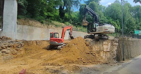 Le ruspe hanno abbattuto un pezzo del muraglione, davanti all’ormai ex cancello per la “Madonnina”. Si allarga l’accesso al condominio, in previsione della fine dei lavori: con una nuova rampa, più larga e con una pendenza diversa, che permetterà alle auto che salgono in via Vasco di immettersi direttamente nel viale di ingresso. Una cosa che fino a oggi era praticamente impossibile: per entrare nella strada privata diretta alla “Madonnina” era necessario proseguire fino al parcheggio del Vescovile, fare inversione e scendere per poi imboccare il vialetto. I lavori sono cominciati lunedì 30 giugno e finiranno probabilmente giovedì 3 luglio, senza grossi disagi per la città. L’allargamento dell’accesso, interamente realizzato dall’impresa privata che si è occupata del cantiere del palazzo, era uno dei nodi ancora da risolvere per i lavori al grande condominio. La “Madonnina” ormai mostra il suo aspetto finale in modo quasi definitivo: per chi era abituato al “layout” precedente del grande edificio, l’impatto è notevole. Attualmente sono solamente una decina gli alloggi già occupati nel “palazzone” (su circa 60-70 venduti). I lavori sono cominciati nella primavera di due anni fa: una ristrutturazione enorme, che nei fatti è durata più di quanto si era inizialmente previsto. L’allacciamento alla rete idrica è completato, la cabina Enel (spostata da tempo) è in fase di collegamento. Resta l’incognita sulla viabilità futura di via Vasco, quando il condominio sarà completamente popolato e l’unica via di accesso dovrà reggere un carico di auto sicuramente superiore a quello attuale. Non va comunque dimenticato che fino al 2015 quella stessa strada era utilizzatissima dalle auto di chi doveva raggiungere il Tribunale. Tra le ipotesi al vaglio dell’Amministrazione comunale, lo ricordiamo, c’è la possibilità di istituire il senso unico in senso ascendente, così da evitare problematiche all’innesto con via Carboneri: un incrocio molto critico per chi scende da piazza Maggiore (o, appunto, dalla Madonnina). Altra novità: assieme all’allargamento della rampa all’incrocio col viale per la Madonnina verranno realizzato una decina di nuovi posteggi auto liberi e gratuiti.