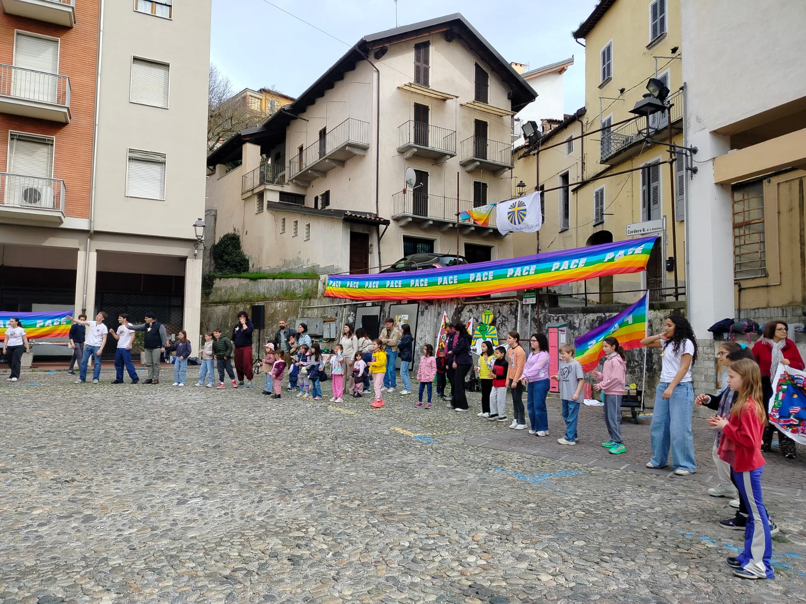 Dopo il ritrovo in piazza Santa Maria Maggiore, la marcia ha attraversato il centro cittadino con i suoi colori, i volti di giovani e bambini, le famiglie, gli Oratori, gli animatori, gli scout in un pomeriggio di riflessione, cammino, testimonianze e condivisione per un unico obiettivo: la pace, con un invito a tutta la comunità a mettersi simbolicamente in cammino insieme.