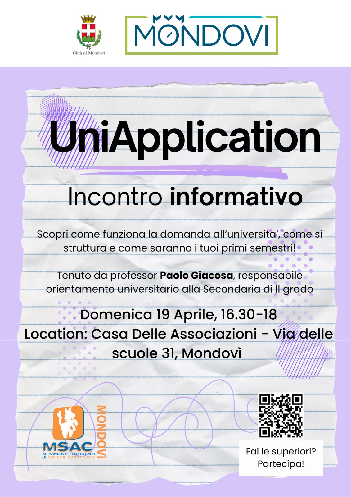 L’evento è promosso dal MSAC (Movimento Studenti di Azione Cattolica), da sempre attivo nel supporto ai giovani nel loro percorso formativo e personale.
