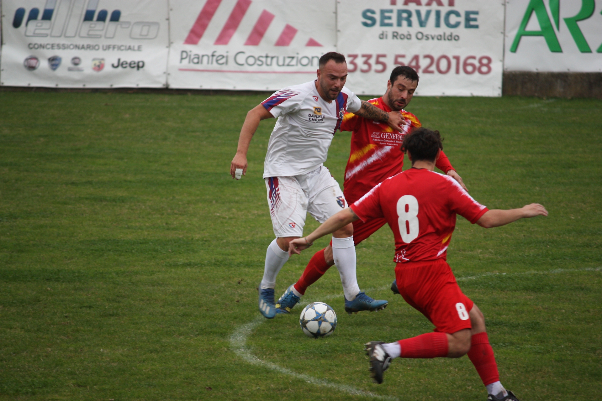 Dunque va in scena la proverbiale partita dai due volti, quello lieto ed illusorio dei 45’ iniziali e quello del sorpasso subito e dei conseguenti rimpianti. L’onda lunga del successo pieno ed esaltante del turno che precede compare sottoforma del gol di Lugliengo, già eroe in terra bisaltina, che evidentemente, in settimana, ha tenuto in caldo le qualità di bomber ritrovato: è lui, sull’azione avviata da Martini e rifinita da Marengo, a sbloccare la contesa con una rasoiata che dalla destra si infila nell’angolo basso opposto. Il vantaggio monregalese, tuttavia, non resiste che qualche minuto, ben presto neutralizzato da una giocata di fino del centrocampista ospite Penna sugli sviluppi di un affondo a destra di Sanneh. L’1-1 subito dà l’idea dell’inconveniente superabile, ché quelli di Barberis, sia pure senza arrivare ad architettare chissà che, si esibiscono comunque in buone idee offensive ed in una certa precisione nel palleggio.