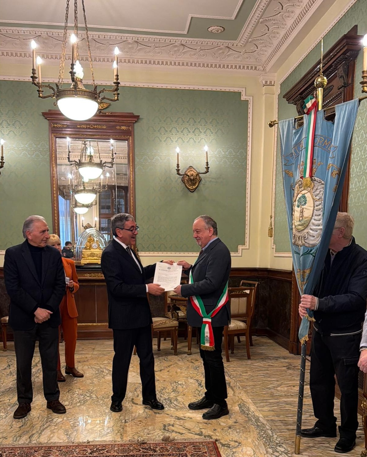 Oggi, venerdì 20 febbraio, è una giornata storica per Ormea: nei saloni di rappresentanza della Prefettura, a Cuneo, ha ricevuto la Medaglia d’Oro al Merito Civile conferitele con il decreto del Presidente della Repubblica, firmato il 30 aprile 2025. Il prefetto Mariano Savastano ha accolto il sindaco Giorgio Ferraris, gli assessori, i consiglieri ed esponenti delle associazioni del territorio per la cerimonia di consegna ufficiale.