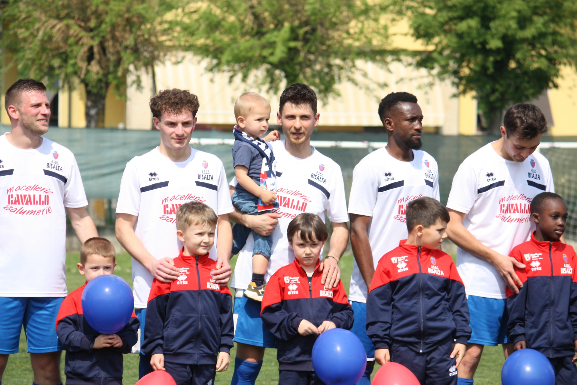 Sono l’epilogo e l’apoteosi di una giornata storica per tutto il vasto clan bisaltino. Si parte con la musica ad alto volume, i palloncini, i fumogeni, i colori rosso e blu dipinti sui volti di attori e spettatori, i bambini ed i ragazzi del settore giovanile che tengono per mano i novelli campioni, la palpabile commozione di questi ultimi; si chiude, ed anzi si va avanti ad libitum, in una specie di genuina festa paesana, con tanto di salamelle e beveraggi, il trofeo che passa di mano in mano, le foto di rito e gli abbracci che si sprecano. L’ha fatta grossa, il Bisalta, vincendo questo campionato, ed il tributo in pompa magna dedicatogli dalla società e dalla sua gente ne è la prova. Un prima e un dopo di entusiasmo sparpagliato in abbondanza che inevitabilmente travolge tutto il resto. Compresa la partita piazzata lì in mezzo, quasi come fosse una pratica di scarsa importanza, da smaltire in qualche modo.