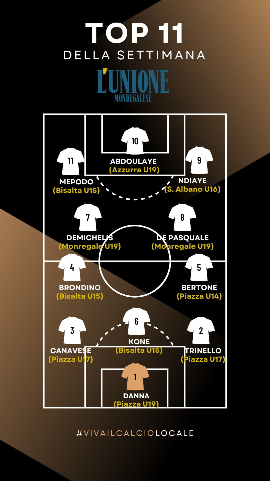 MONREGALE. Frau, Turano, Sansonna, Zanone, Aimo, Filippi, Diallo, Amato, Dematteis, Bertolassi, Castellino P. (Di Rosa, Thior, Rasore, Castellino N., Ferrero). All. Tomatis.
