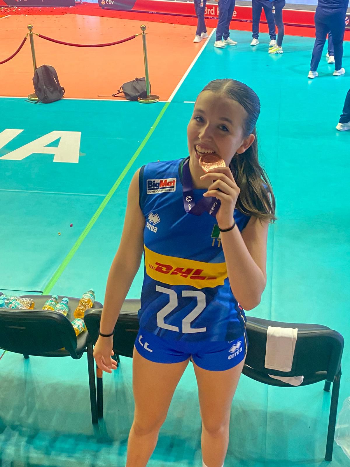 In un anno incredibile, Matilde ha conquistato la medaglia di bronzo agli Europei Under 16 con la nazionale azzurra. In estate è poi passata alla Imoco Next Gen, il settore giovanile della squadra più forte del mondo. Ciliegina sulla torta: a novembre, è arrivata per lei anche la prima convocazione in serie A1, insieme alle giocatrici top a livello mondiale.
