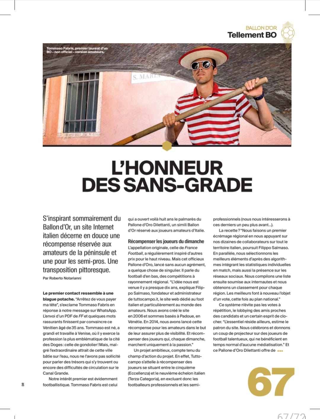 Un'ultima piccola curiosità. Il pallone d'oro dilettanti di Tuttocampo è arrivato alla decima edizione e la sua storia è stata raccontata anche dalla testata francese che organizza il "vero" Pallone d'oro, France Football.