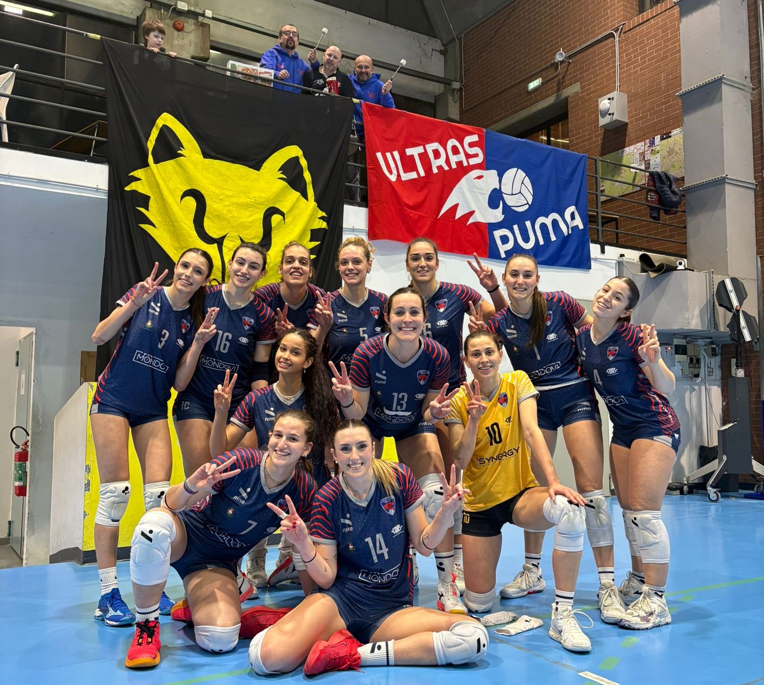 Dal terzo set, faticosamente, Mondovì ritrova fortunatamente il bandolo della matassa e inizia la rimonta. Le monregalesi ritrovano ritmo e concretezza e accorciano 25-15, prima di pareggiare il conto nella quarta frazione: 25-14. Anche al tie-break viene fuori la maggior caratura delle ospiti, che si impongono con un largo 15-4.