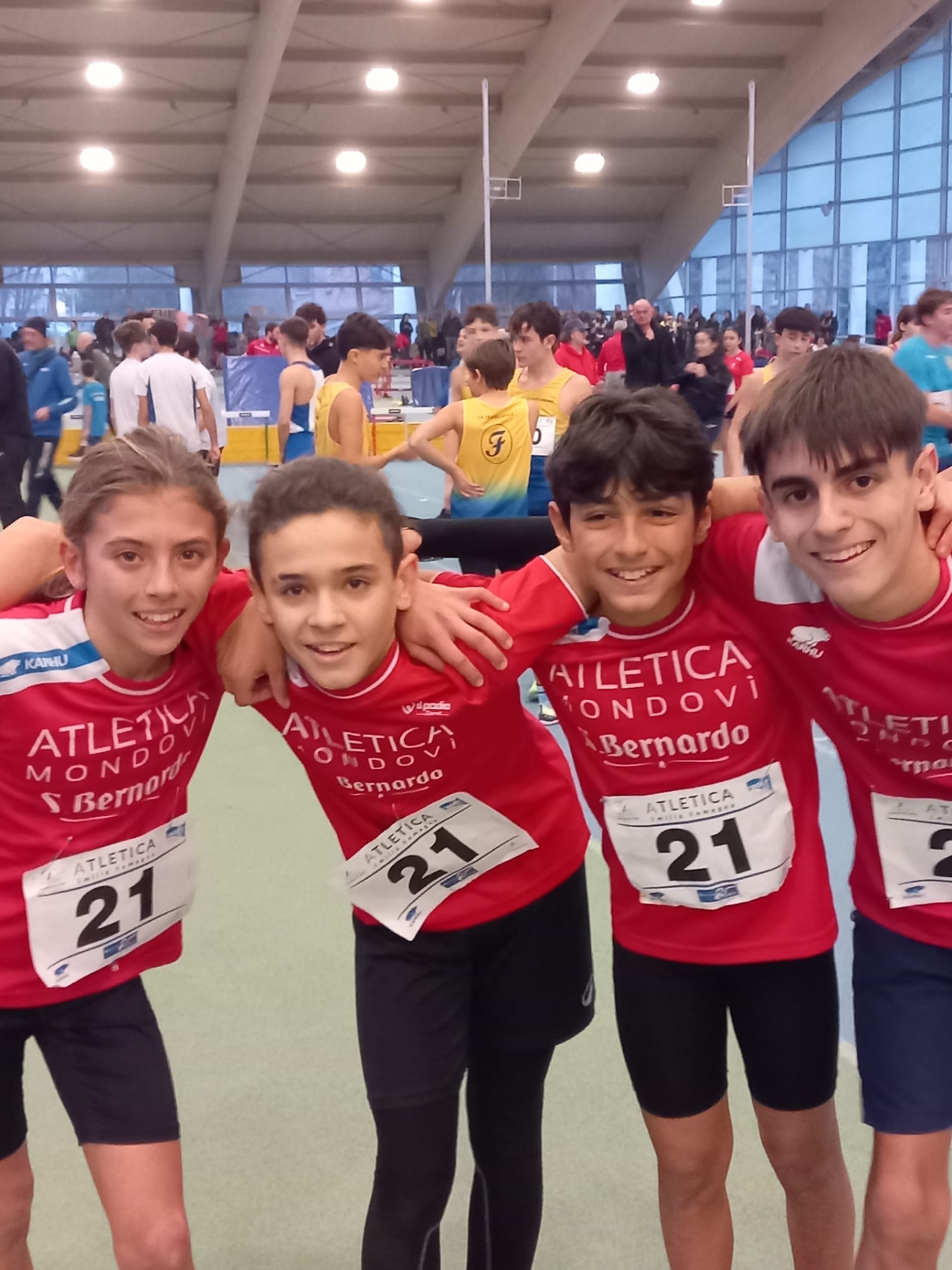 Trasferta positiva a Parma, in collaborazione con l’Atletica Asti 2.2, per oltre 40 giovani monregalesi impegnati in un PalaLottici gremito con 500 atleti da tutto il Nord Italia. Numerosi i podi conquistati: argento per Yasmine Bendiboun nel peso Ragazze (9,68 kg da 2 kg), argento per Lorenzo Tassone (9,77) e per Giacomo Renesto nei 60 hs Ragazzi in 9”51. Bronzi per Federico Bruno nei 200 metri, Rayan Bruno nei 60 hs e Andrea Garello nel peso.