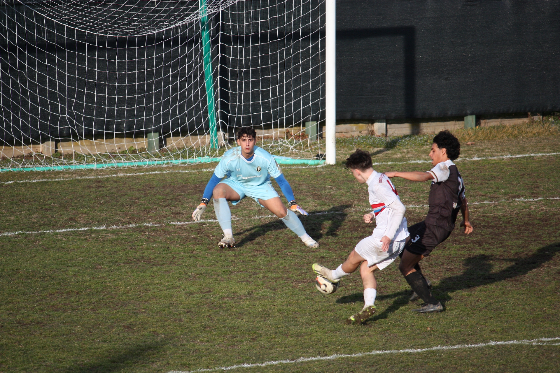 Peccato che, come si era di colpo accesa, altrettanto rapidamente la Monregale si spenga favorendo un quarto d’ora di predominio avversario, con tanto di gol quasi fatto e mezzo mangiato da Arcari, e con la punizione invece piantata da Ongaro nella porta di Piazzolla, dritta e letale come una spada nel cuore. Ecco, a quel punto, il merito della Monregale: non arrendersi, ma restare viva e combattiva, e rispondere colpo su colpo. E alzare il baricentro, provando qualche giocata palla a terra, pur nel contesto segnato dal campo brutto e dalla partita sporca.