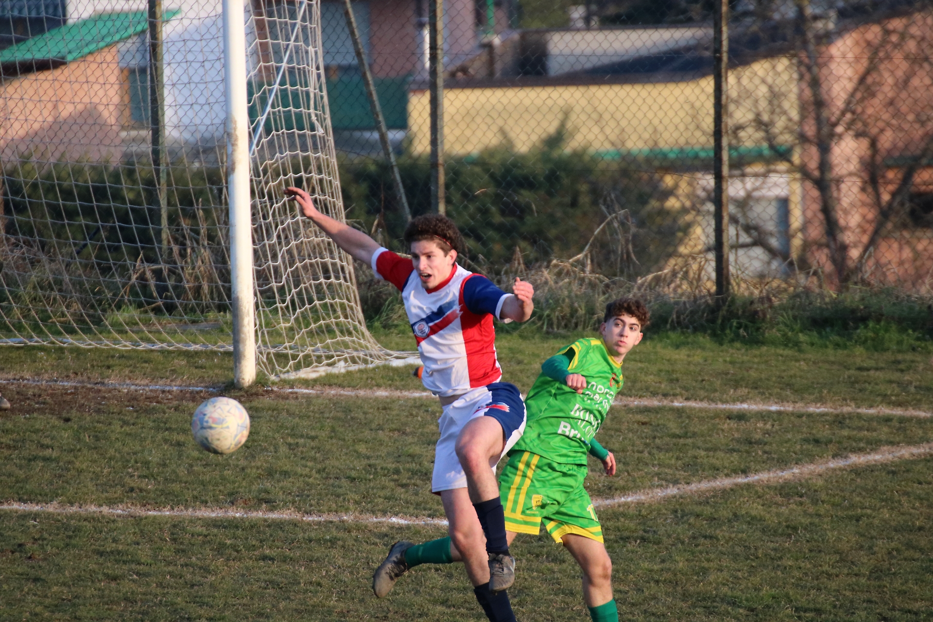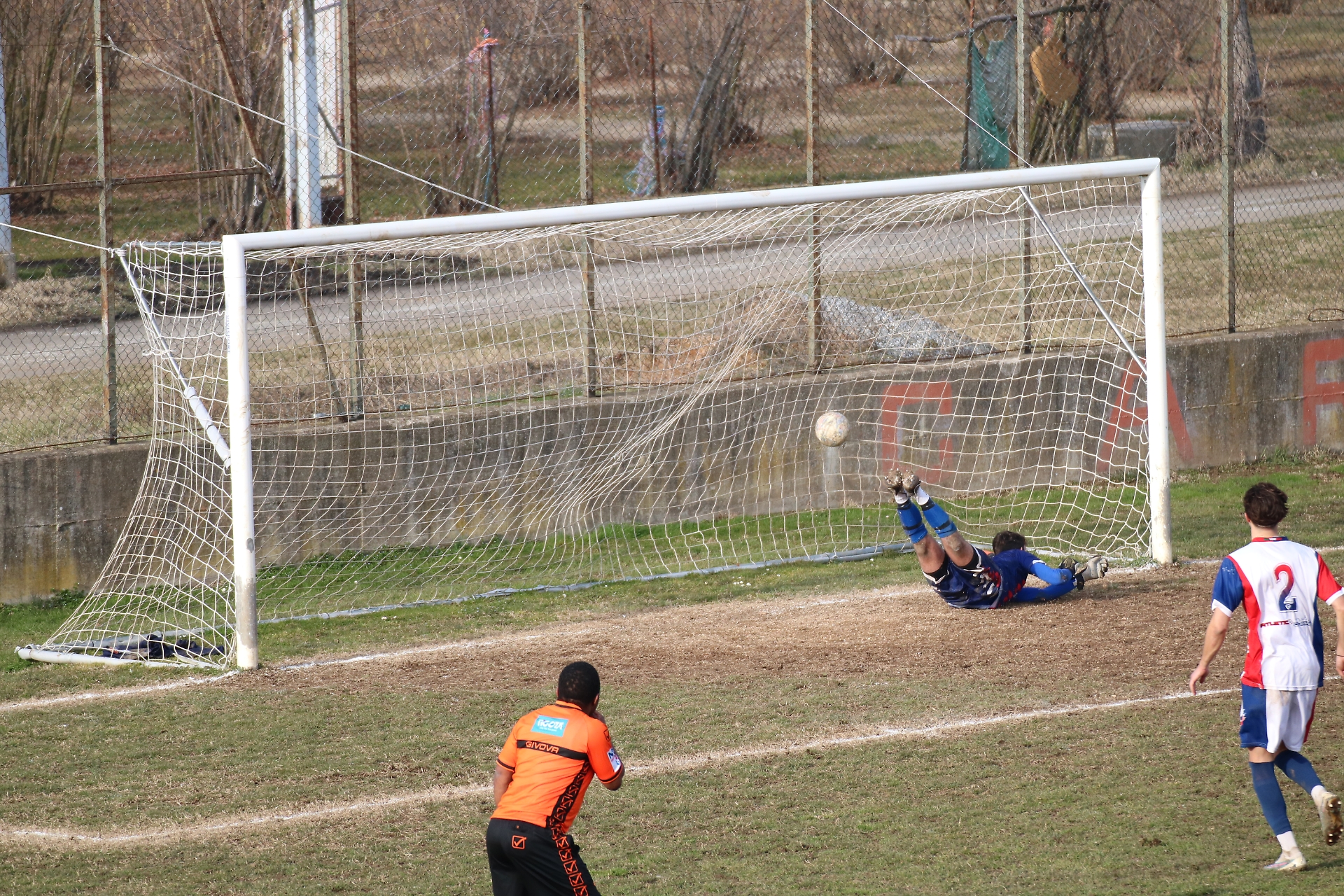 Poggio sfida Passarotto con un mancino rasoterra e chirurgico, confidando anche in una leggera deviazione del difensore. Ma il numero uno carrucese non si fa beffare e si stende togliendo la palla dal secondo palo. Al 39', trema la difesa locale: Ghignone svetta di testa in area e colpisce in pieno la traversa. La squadra ospite aumenta l'intensità a caccia del doppio vantaggio e, dopo l'occasione sciupata da Parussa, ecco l'opportunità dal dischetto: al 43', il direttore di gara vede un tocco con il braccio da parte di Rossi e assegna il calcio di rigore, che Mollea non fallisce.
