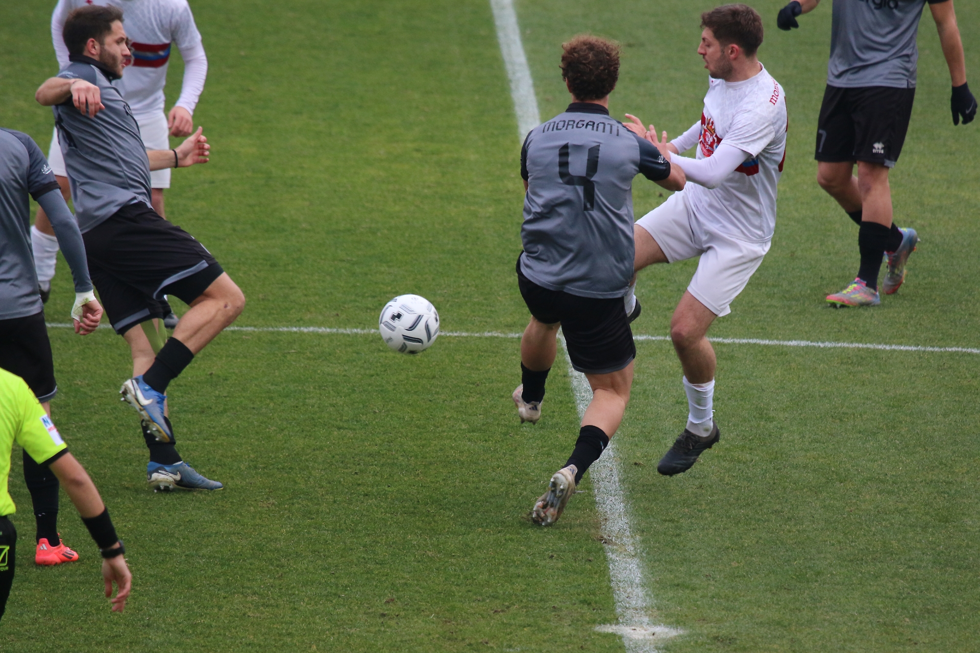Prendiamo posto davanti al rettangolo verde che è stato, per dire, pure il palcoscenico di un giovanissimo Gianni Rivera, mentre ancora rimestiamo questi ragionamenti di fasti e miserie passati e presenti, di cadute e risalite. L’ingresso in campo dei grigi locali e dei biancorossi nostrani ci riporta alla realtà, che è pur sempre, al di là del contorno, quella di una partita di pallone di provincia, come tante ce ne sono state e tante ce ne saranno. E alla considerazione, ben poco poetica, che normalmente non c’è storia, nel confronto fra chi può metter mano ad un budget lussuoso e chi deve fare fuoco con la legna, per quanto buona, che ha.