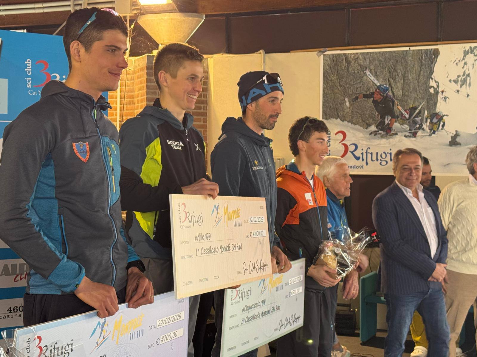 A seguire, una lunga cresta da percorrere con ramponi ai piedi e sci nello zaino, passaggio tecnico e spettacolare che ha fatto la differenza. Il punto culminante della gara è stato raggiunto ai 2380 metri del Monte Mondolè, balcone naturale sul comprensorio e vetta simbolo della competizione.