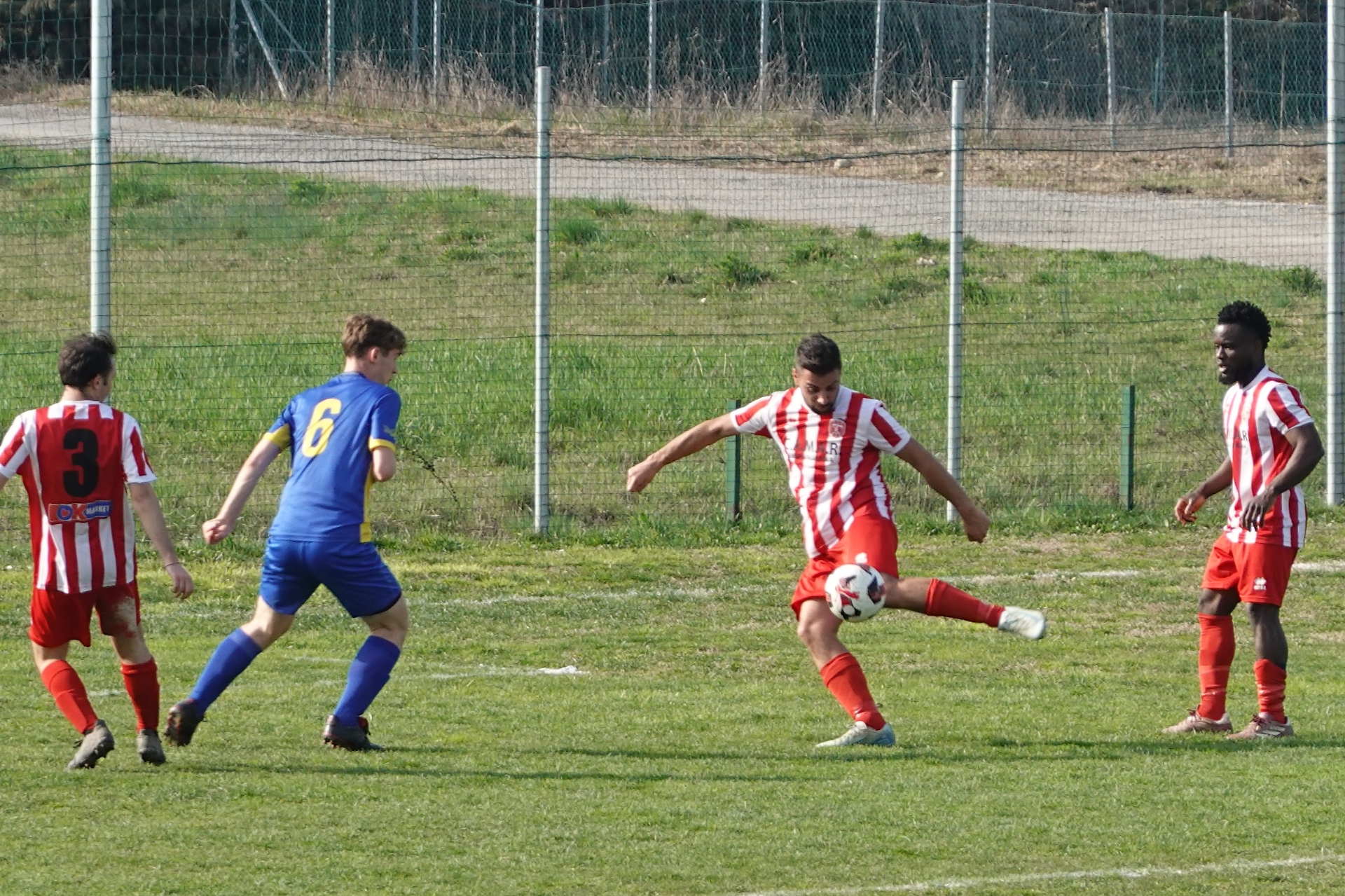 Il primo tempo si trasforma in una montagna russa di emozioni, tra chi trattiene il respiro ogni qualvolta i padroni di casa hanno l'occasione per allungare le distanze e chi sbuffa nel vederla sprecata. E intanto le poche occasioni del Langa vengono stroncate sul nascere dalla difesa della Benese e dai fuorigioco. Si arriva così a pochi minuti dall'intervallo quando Jargba allarga a Delpiano. Il numero undici, nonostante la voglia disegnare, serve Burdisso in mezzo all'area. Qui il numero 6, già privato di un gol, se la alza da solo e calcia sotto la traversa trovando l'agognato 2 a 0.