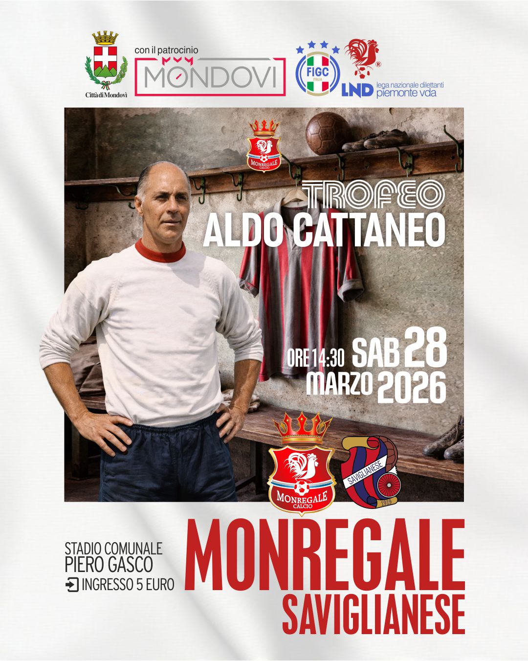 Oggi pomeriggio al "Piero Gasco" è andato in scena il Memorial "Aldo Cattaneo". La Monregale e la Saviglianese (Promozione) di Franco Giuliano si sono affrontate concludendo il match sullo 0-0. Alla fine si è imposta la squadra di Michele Magliano: i Galletti hanno superato i Maghi 5-4 ai calci di rigore. Un penalty fallito per la formazione ospite, mentre per i padroni di casa nessun errore con esecuzioni vincenti di Leo Di Salvatore, Mellano, Passerò, Alfieri e Gabriele Di Salvatore.