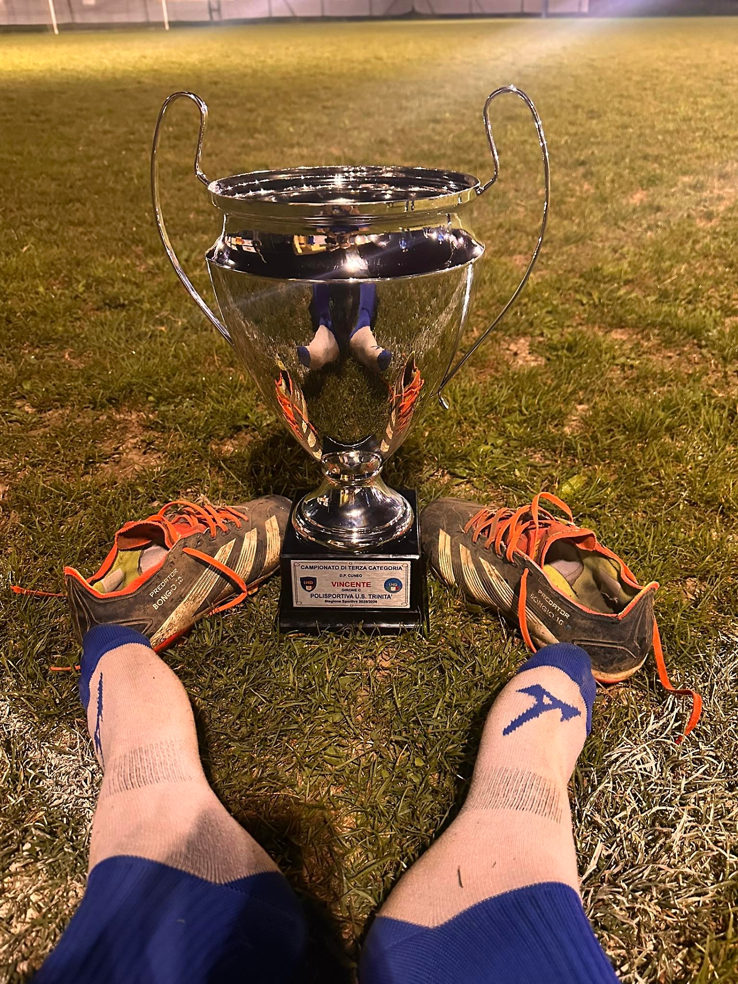 Ieri sera, in quella tiepida notte primaverile che sembra scritta apposta per i titoli di coda, è andata in scena The Last Dance di Enrico Bongioanni. “Bongio”, per chi sa. E per chi non sa, pazienza: certe cose o le hai viste dal vivo o non te le spiega nessuno. E Bongio, a quasi 48 anni, ha distribuito le ultime due perle come uno che svuota le tasche prima di lasciare il tavolo: niente nostalgia, solo classe nel 7-0 con doppietta con cui il suo Trinità ha concluso trionfalmente il campionato di Terza, dopo la promozione in Seconda. Un ultimo campionato vinto. Per sfizio, certo. Ma anche per abitudine.